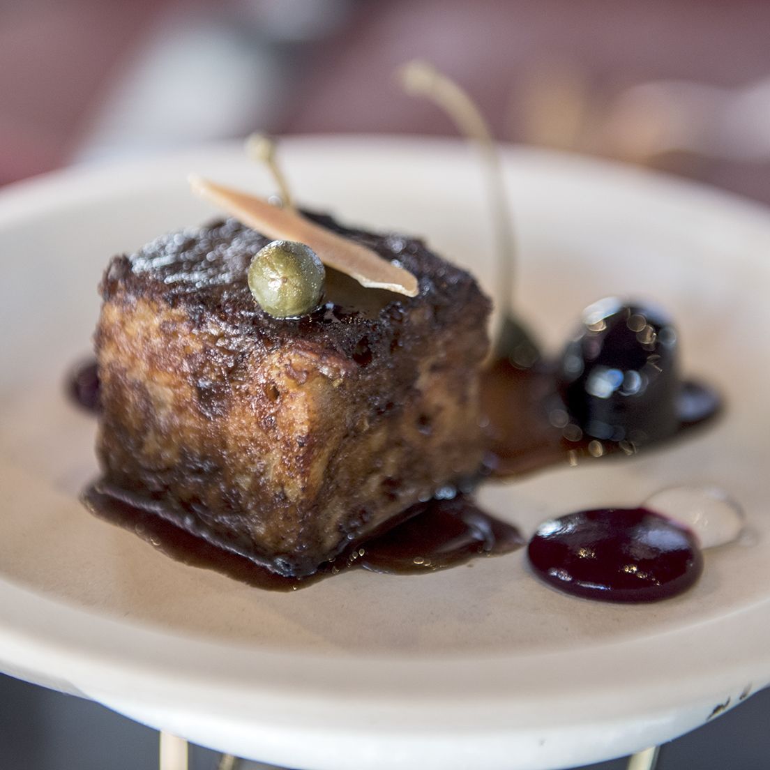 Falso Irish Coffee, rabo de ternera guisado, espuma de patata y virutas de trufa de verano